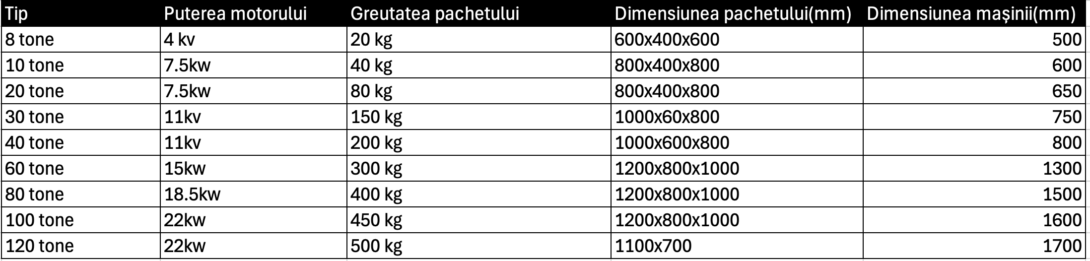 Parametrul tehnologic al mașinii de balotat hidraulic vertical: